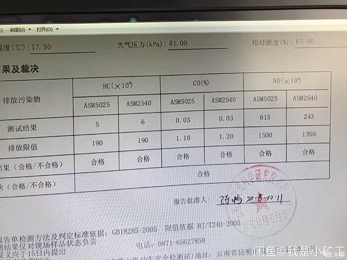 致胜7年年检发动机排气测试表,能达到国六标准吗?