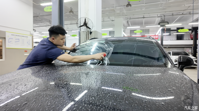 平时我们在外洗车,普洗并不会把油膜问题去除,高速行驶影响视野,感谢小刘师傅认真去油膜;