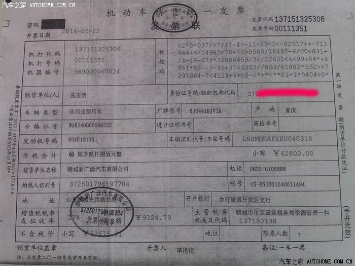 恩,还是先来张发票吧!66800敲定舒适版(只是发票,低开了