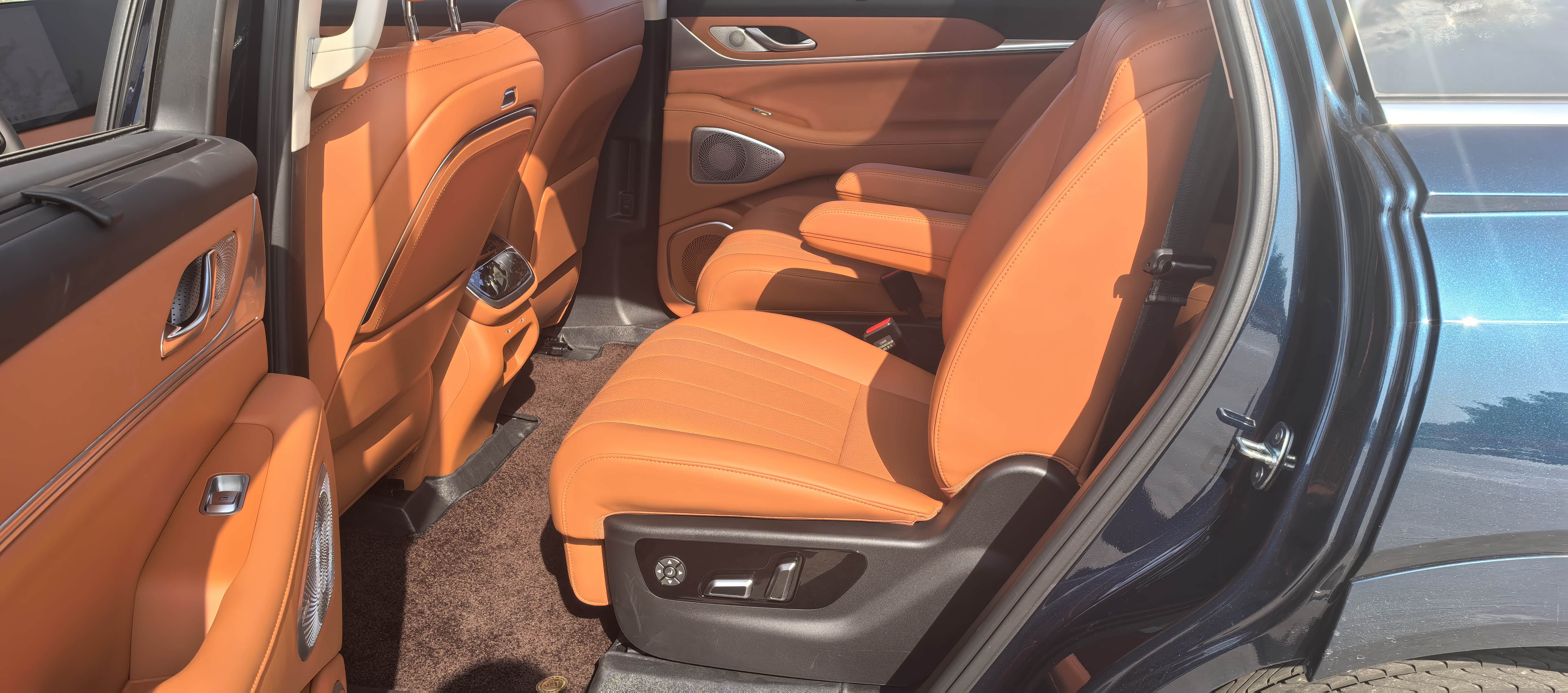 作为中大型SUV,蓝山的空间真没让我失望。我185cm、200斤的体型,坐主驾很舒服,后排也宽敞。三排坐成人会稍显局促,但俩娃坐进去绰绰有余,看后排娱乐屏的距离也刚好,再也不用路上跟孩子“斗智斗勇”了。