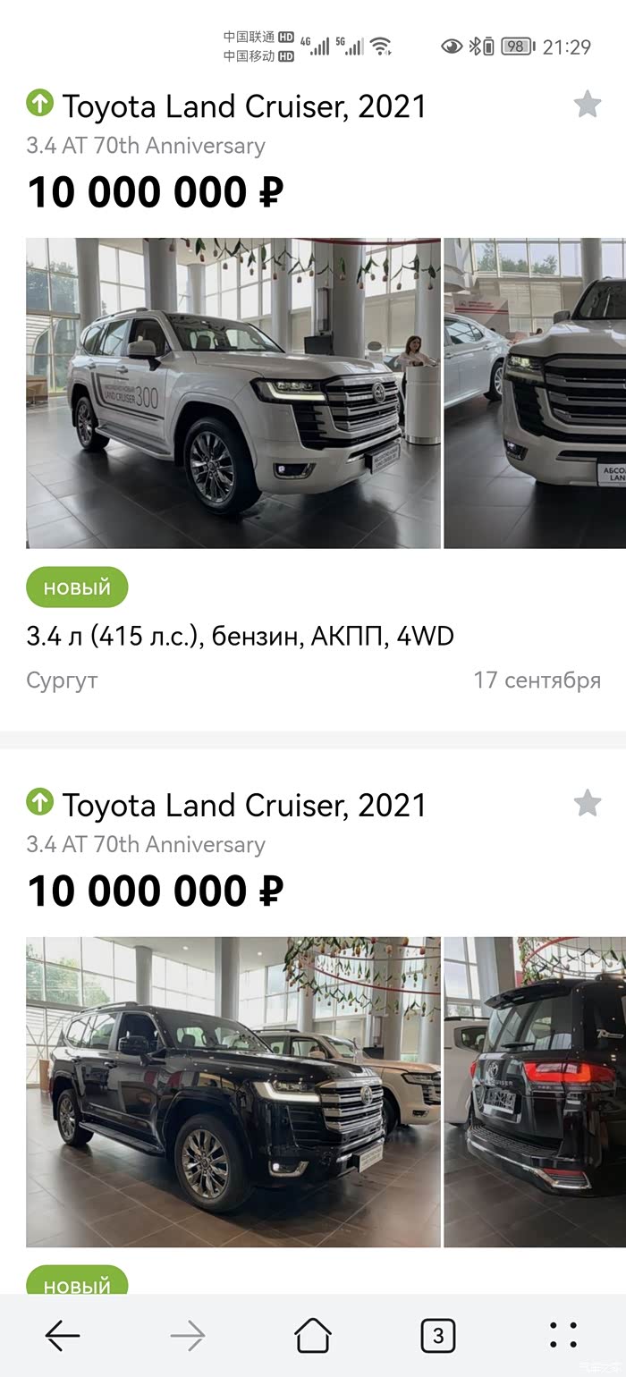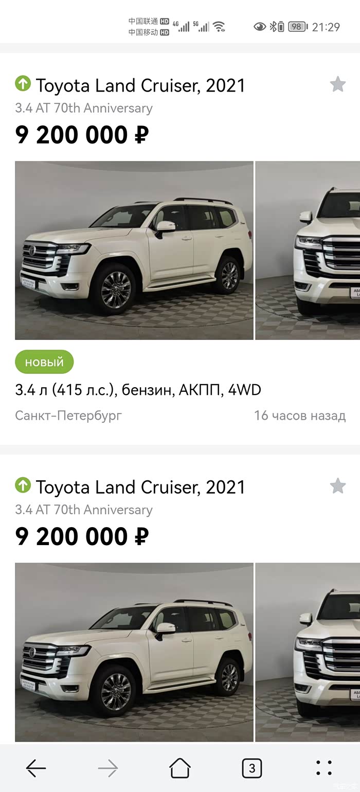 丰田俄罗斯官网上LC300的价格是5776000卢布: