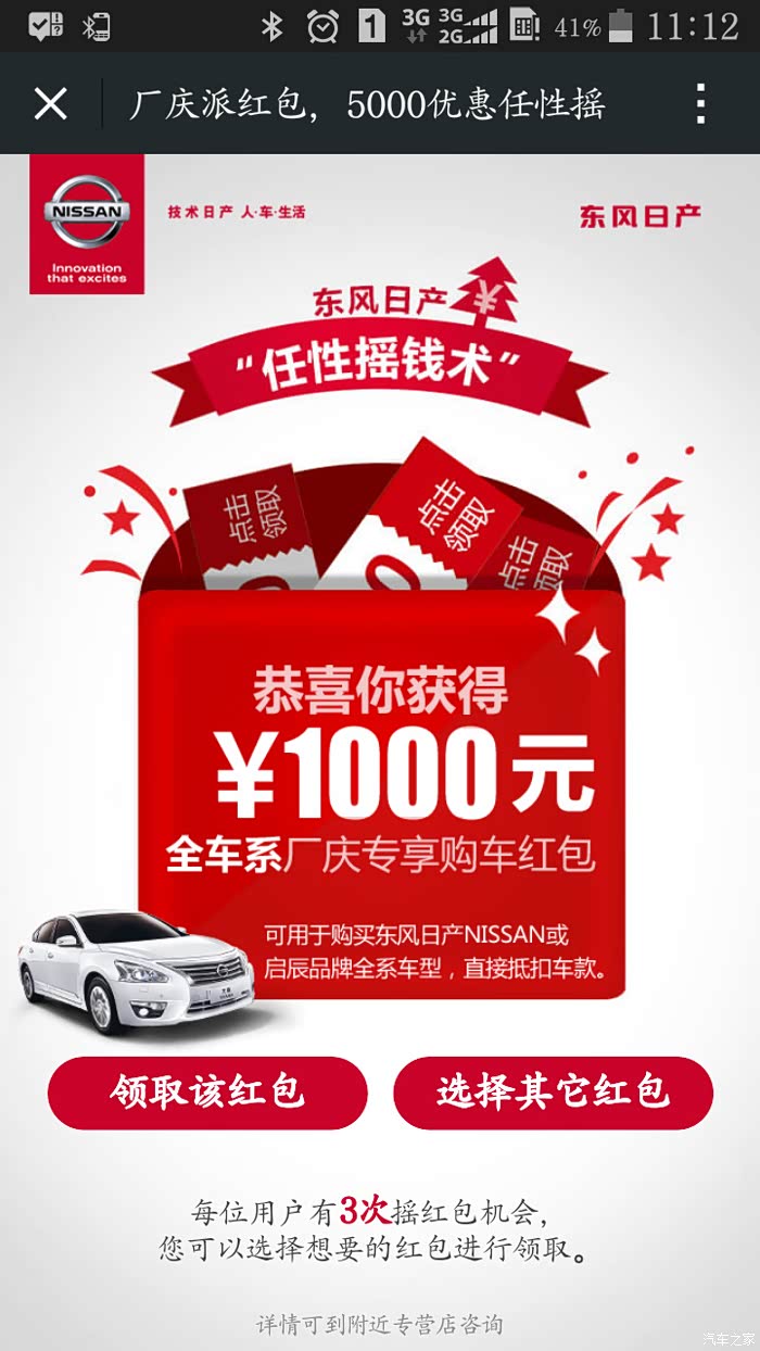 来个提车时摇的红包,不过运气不好,才省去1000大洋