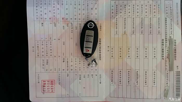 先放上一张据说是认证必须的神器:机动车登记证第二页(隐去发动机号和车架号)的照片,并附上钥匙。