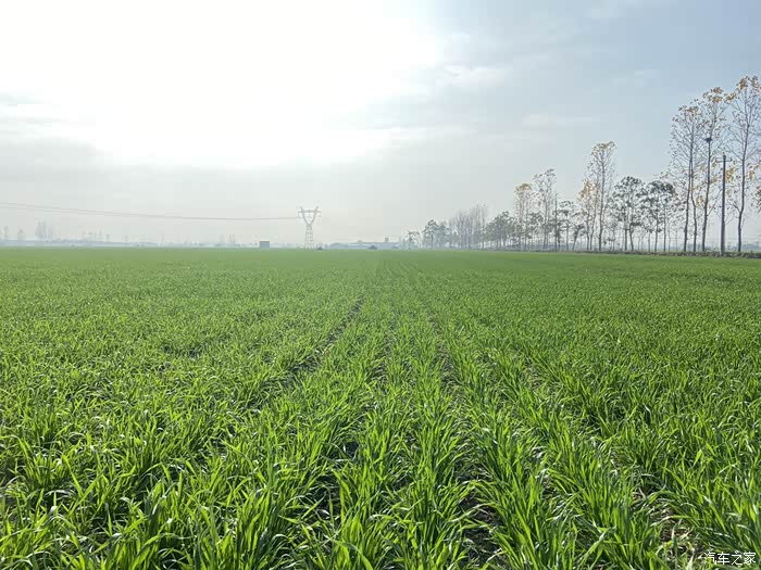 初冬乡村的麦田,一片碧绿,好像静逸的海面。