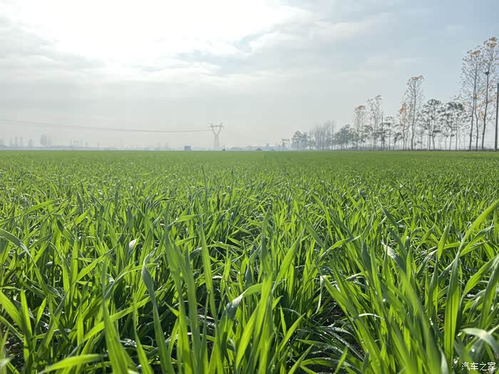 绿油油的麦苗铺满大地,毛茸茸,绿茵茵的,十分养眼,