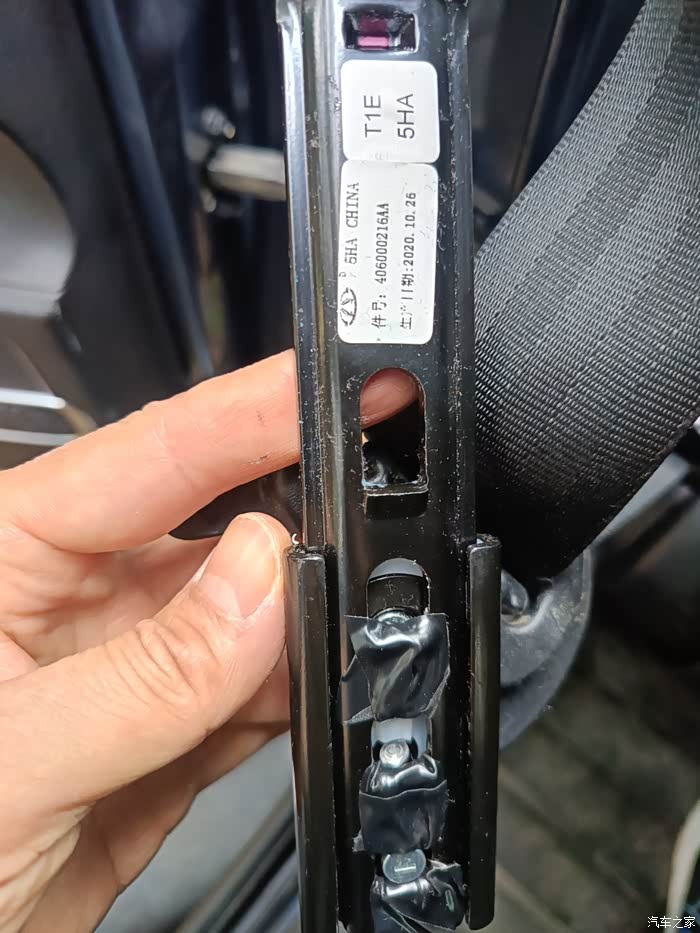 最近发现安全带异响,吱吱吱,试试网友的办法,暂时解决。用8mm套筒,2个+字螺丝,缠了电工胶布。