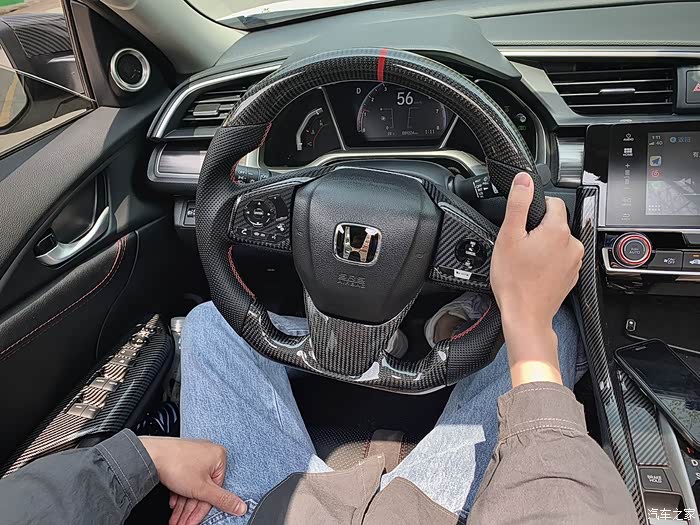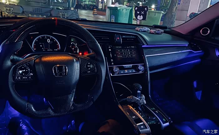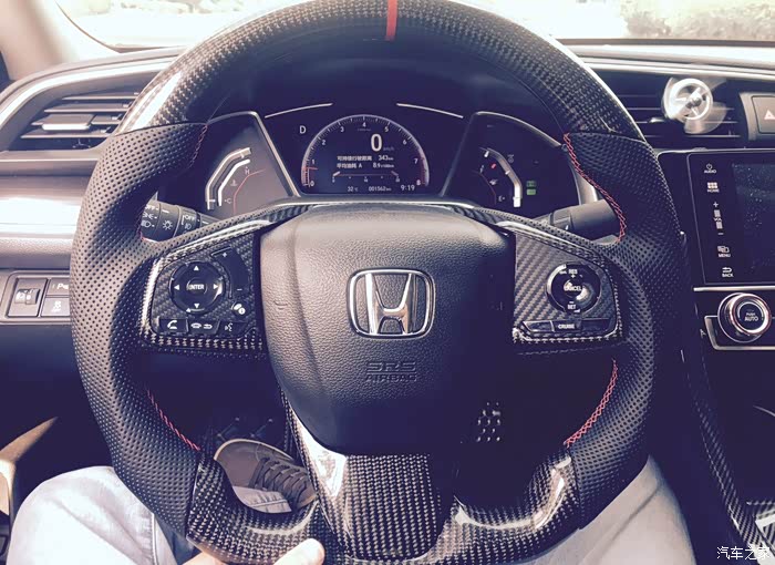 但是最终还是止步于三缸,并不是诋毁三缸发动机只是暂时接受不了这个概念。买思域之前思域已经小有名气了 ,秒天秒地秒空气,思域不改推下海等代名词已经扣在思域头上了。当时考虑过两个版本,劲动和热动,差6000块钱 ,燃动自带改装件,当时买车也没想过会去折腾,就为了好看一点买了燃动,主要是喜欢17寸的轮毂和中出排气带一点声浪,另外就是红色仪表盘运动感十足。