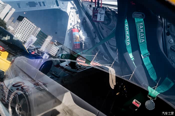 第二辆也是竞技改装路线,只不过更极致。亮黄色的车身,搭配白色的六爪轮毂挺协调的,然后一看车尾没加装尾翼,多少会认为这辆车是盆栽组选手,但如果你真这么想就错了!看车头格栅部分的导风管、做了多处散热设计的机盖、全车拆空减重的驾驶舱,即使不知道动力部分是否有改装过,也能多少知道是个赛道上的狠角色。