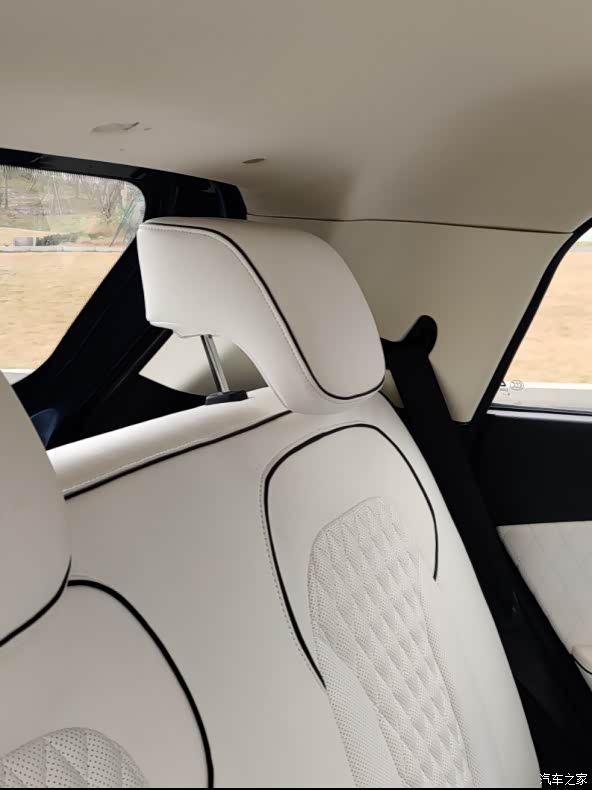 后座的靠头这里都做了包装,摸起来很舒服,头靠着也很舒服。只是这个皮料和颜色比较容易显脏,后期要随时清理和保养。