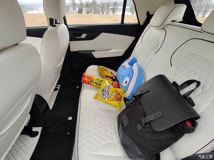 平时后座就放着我日常要装的背包,还有一些喜欢吃的零食。另外我还放了一个抱枕在车里,有时候想在车里小憩的时候可以当枕头,有时候开车的时候也可以放在腰间,一下子驾驶体验就更好了。