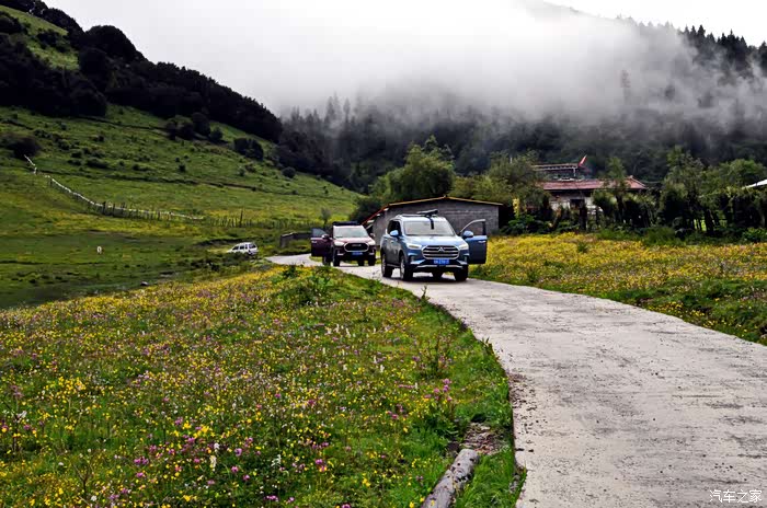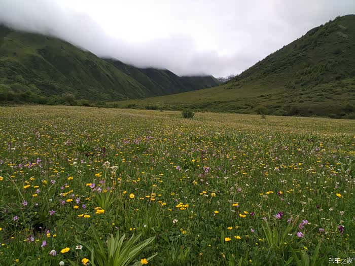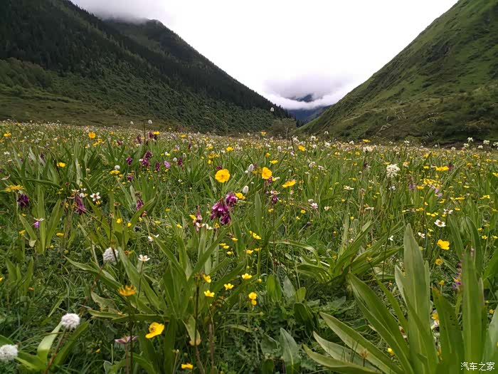 从梦笔山下山时,PeterTang推荐我们再去米亚罗的国有牧场看花海,米亚罗位于四川省阿坝州理县境内,一个曾因为红叶而出名的旅游胜地。如今在这迷人的地方又发现一个新的旅游目的地---米亚罗国营牧场。我们到达米亚罗镇沿老米亚罗村的道路进去,大约20公里便到达。不过近期这里也在扩建道路,将进山的道路就变成非常泥泞不堪,这次如果不是我们改装升高后的车辆,进来这里还是需要费很大功夫。按照PeterTang的说法,也需再过几年这里也将进行人工打造变成收费景区。我们在返回时候与搭便车的当地人聊天的时候才知道,这里的道路一直扩建至深山沟里,准备与毕棚沟后面的凉台沟进行隧道打通,以后从凉台沟通过隧道来这里就很方便了。如果隧道打通,以后这里的风景就会精心打造,国营牧场就会有更多机会展现在游客面前!
