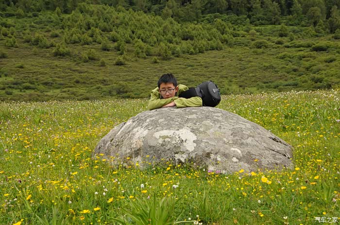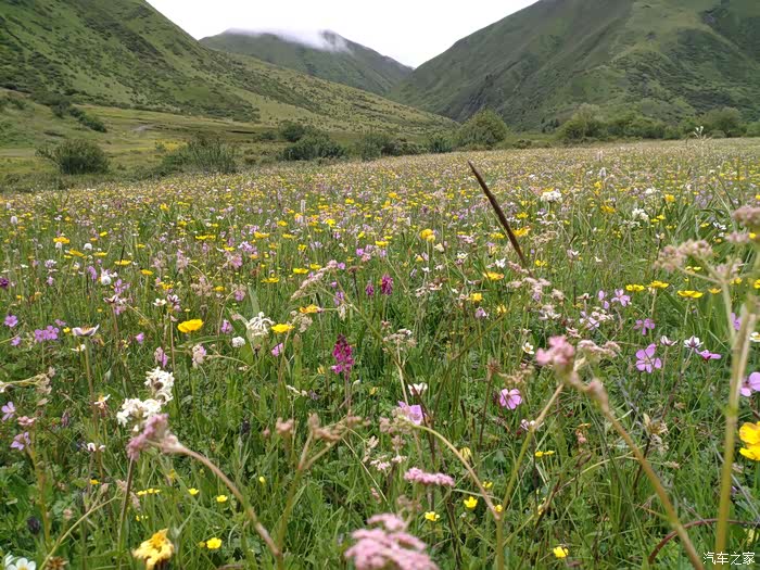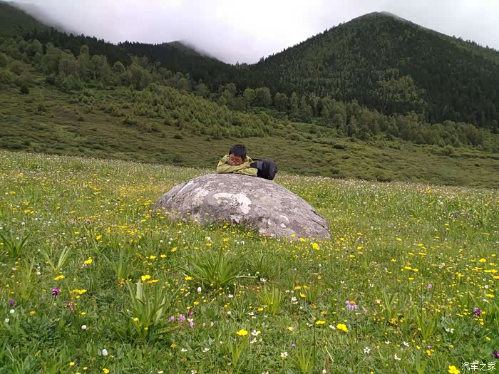 在边开车眼睛也四处扫描着道路两边的景色,对于路边星星点点的一簇一簇小花,孩子在后面不断发出惊讶的声音。而对于这些零星路边花朵我们两车都是快速驶过。突然,孩子发出叫喊“爸爸,看右边,好漂亮的一片花”。我也停车看过去只见一有条牧民便道从这片花丛中驶入树林深处。看来我们的车辆也能沿着牧民便道进入这边花丛中近距离欣赏这片小小的鲜花之地。按照我们的行程规划,今天应该只金川曾达乡观赏云顶花海,谁知计划不如变化快,近段时间天老爷也不作美,连续不断的下雨让云顶花海的上山道发生多处泥石流,道路断路无法前行。如果我们这次出来主要目的寻找川西那片花海无果而回,真的是有点难堪!还好这个路边的鲜花之地已经初步满足了我的寻花之旅!