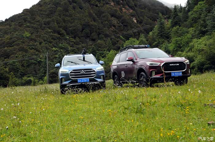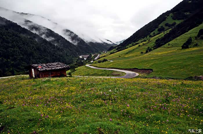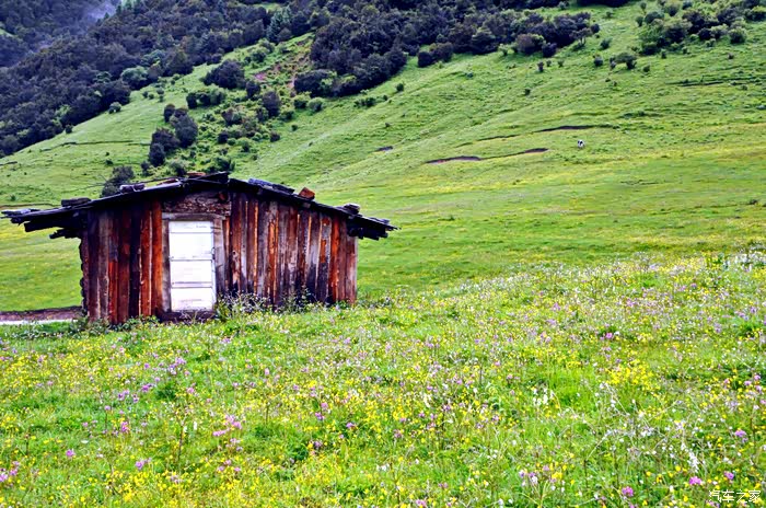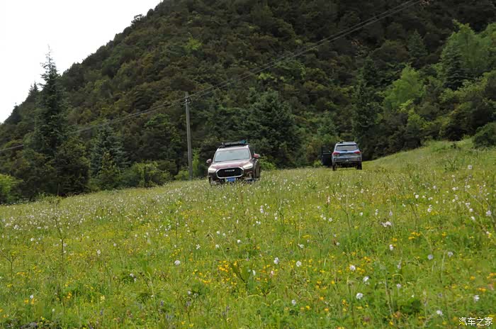 我们两车经过无数的烂泥坑,泥浆地,沿着溪流一路前行,而这条道路因为来的车辆较少,路面上落石不少,有很多已经横在路中间!但是再危险的路面都阻挡不了我们D90前进的步伐。路边湍流不息的溪水激打在石头上浪花朵朵,而溪流两岸边野花盛开,偶尔出现的牧民民居这是五星红旗迎风飘扬!
