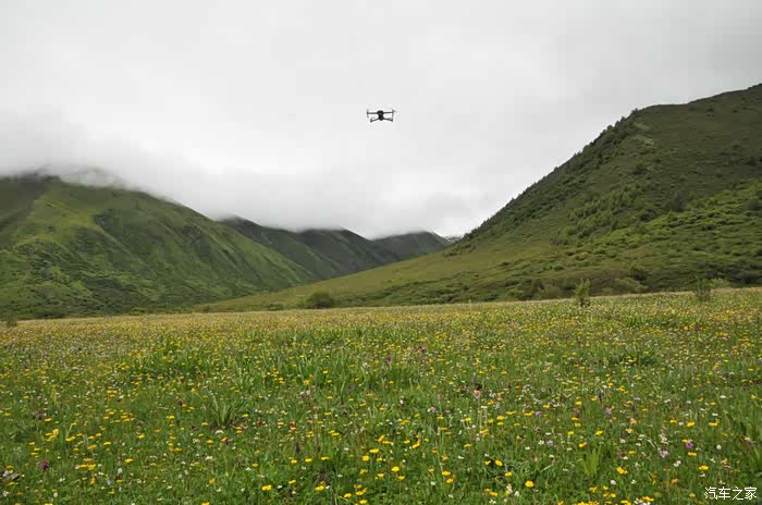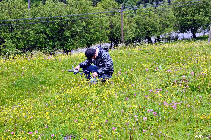如此美丽大坪花海之地,只是手机拍摄已经不能满足我们的要求,也不管此时天老爷开始朦胧之雨飘零起来,放飞无人机,航拍记录才能满足我们内心的冲动!大疆无人机在PeterTang的熟练操作下,一会儿疾驰而过,一会儿低空慢排,一会儿停空360度旋转航拍;看着他的拍摄,我也抑制不住内心的冲动,也拿出小米4K无人机操作一番准备放飞,谁知小米无人机刚飞上空,遥控器就发出报警,“电量不足,请尽快返回”。尴尬瞬间产生,还没有来得及操作,就只见小米4K无人机已经在自我控制下开始下降,万幸的是它自我降落之地就是盛开的花海之地,在鲜花的保护之下进行软着陆!