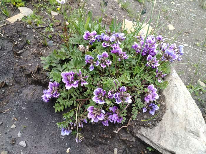 沿着牧民便道驶入这片鲜花之地,改装后的国产铁骐AT胎在湿滑草地里面抓地很稳!下地后看鲜花之地的白色小花,黄色花朵,紫色妖艳各色花丛混杂一起!花瓣上挂着的露珠更加晶莹剔透,经过雨露滋润过的花朵更加娇艳诱人!鲜花之地不大,也就只有百来十个平方之地,也让我们惊喜不已。这片惊喜鲜花之地更加让我们对前面的旅程充满向往!前面翻越梦笔山红色之路是否更有惊喜呢?一阵的手机拍照,相机留影后我们则继续前行。