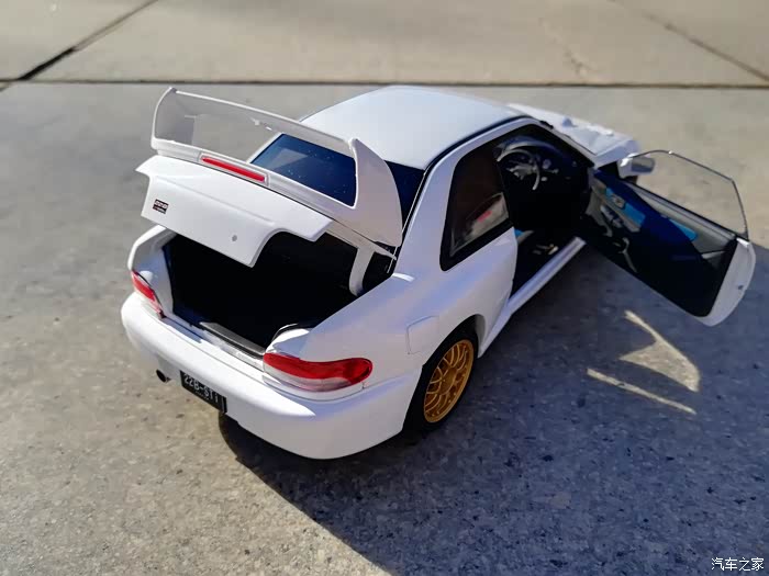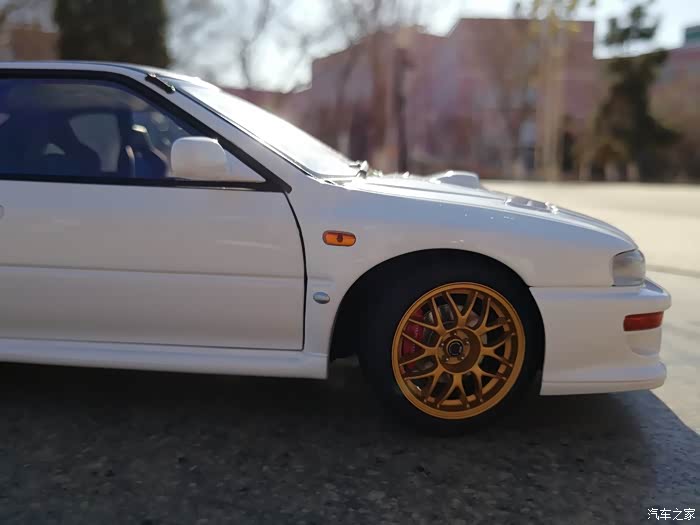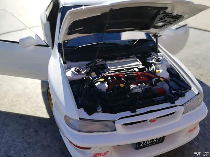 双火心塞同时点火,活塞为锻造表面强化处理,压缩比8.0:1,涡轮机取自STi ver.III的IHI RHF5HB,A/R值20为version系列中最大的,进排气方面也做过些许的改装,引擎盖内的强化中冷器导风板为STi ver.IV标准配备,排汽管使用STi的低回压型式,可口处刻有STi字样十分有质感.