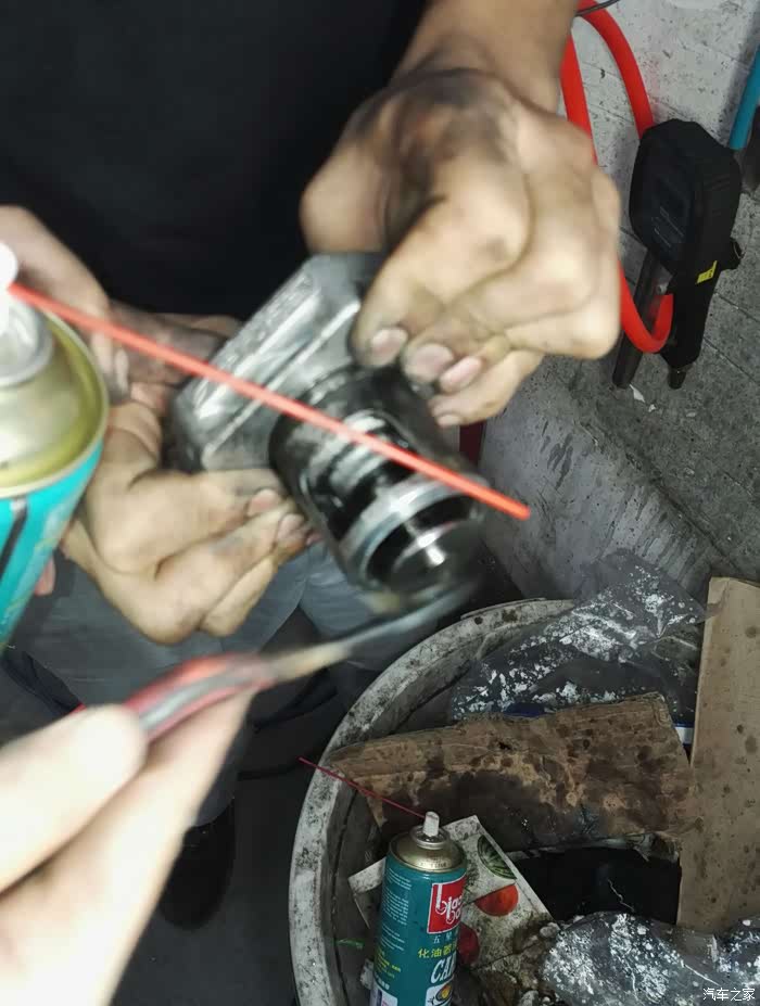 这个东西好拆,构造简单,在这个圆筒里面一手指大小伸出来的就是传感器探头,倒点酒精用水龙头冲,然后用风枪吹干,效果非常不明显,偶尔怠速稳而已