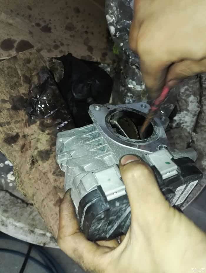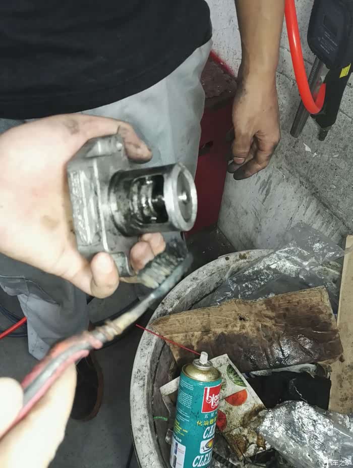 EGR的位置在发动机后面下方大概20厘米位置,修理工用镜子照着拆解出来,这个折磨人的过程就没拍图片了