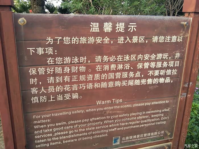K50S--东兴、北海、钦州潇洒飘一回,在从钦州港到钦州有段路,在车载导航里所谓的S国道,32公里,山区村庄道路都是大小水坑洼,垃泥大卡车,夜间行车一个半小时,车轮过水坑洼一上一下,不知道情况,心慌心痛,第二天白天,擦看了下地盘和4个车轮,没事,放下心了,小K的性能通过了考验,杠杠滴,没得说。-----路上就是车堵,有段9,2公里的路就慢慢挪了2个半小时才通过,(4车相撞),进了服务站休息区,人山人海,车辆拥挤,烦,但谁叫你国庆出游呢。在北海宾馆房价翻了5倍(不是节假日80左右,节假日400左右),点菜,要你先点海鲜,要不就没菜点,俺点了3个海鲜600多快,旁边一桌也点了3 个海鲜,1仟,贵。在东兴就房价贵,吃的一般不贵,可惜没能去越南,芒街一日游,节假日有护照可办理,有身份证临时办证的不受理,郁闷遗憾。。。。。。。