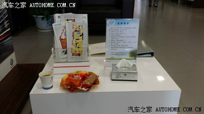 先从提车当天开始:提车时间5月15日,当场就看了下出厂日期,貌似才5月5日,陪我一同提车的死党说这车还很新鲜呢。4S销售在给办保险,在休息室等待,说实话大众的环境还是很不错的。