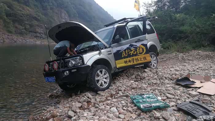 然而,也许是玩的太兴奋了,越野经验丰富的伟哥,一不小心马失前蹄,车头陷入了深水中,导致发动机空滤进水熄火