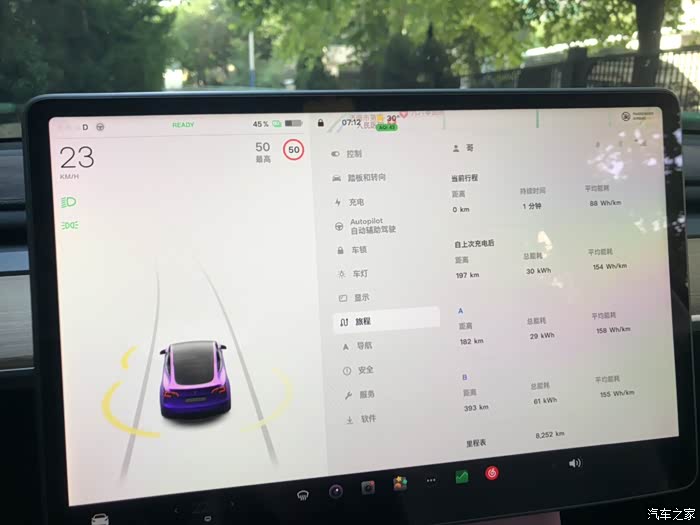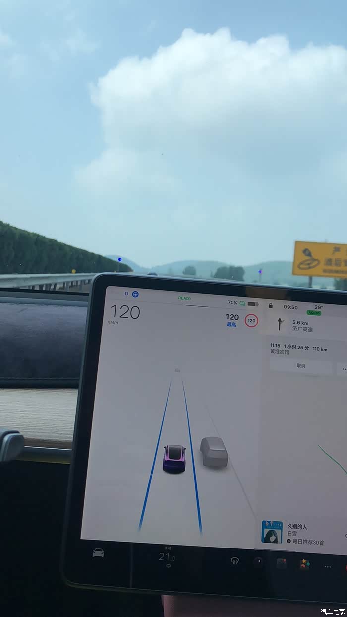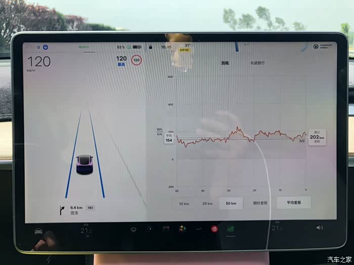 全程AP定速120,但上午车流量大,所以平均车速也就是100-110左右,高速能耗153。