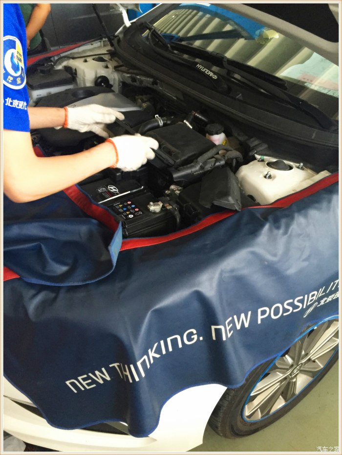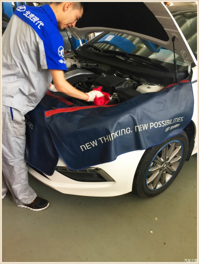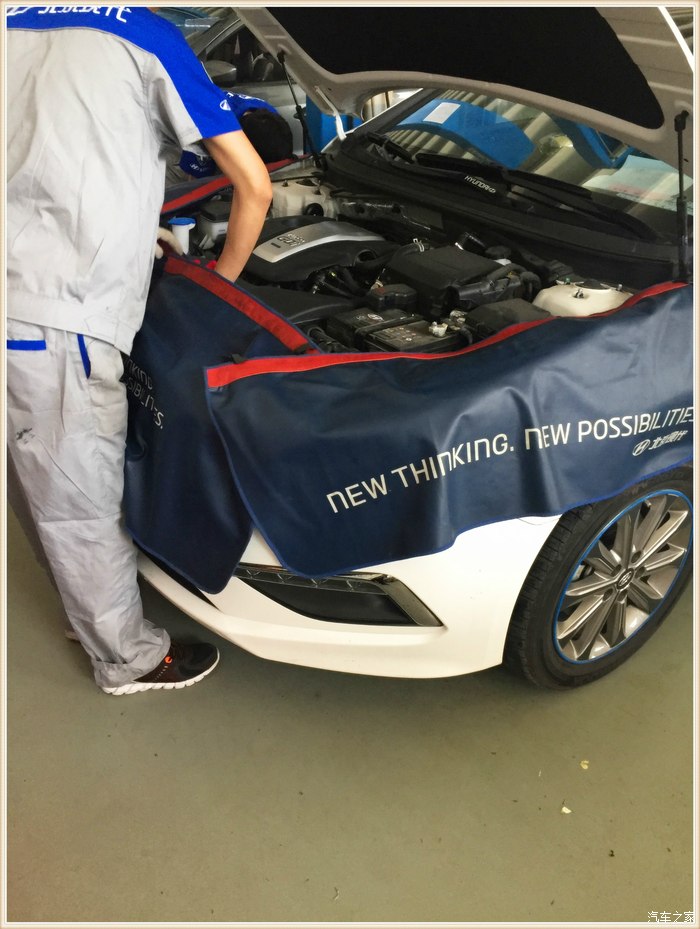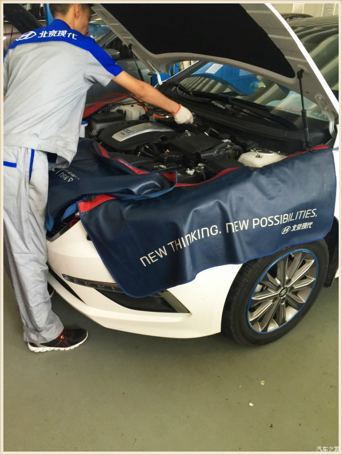 师傅先是环车检查,然后测试灯光,接下来就是打开引擎盖。我发现我九妹还不算脏。
