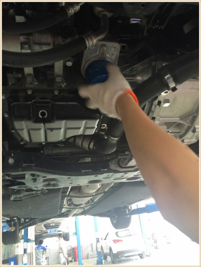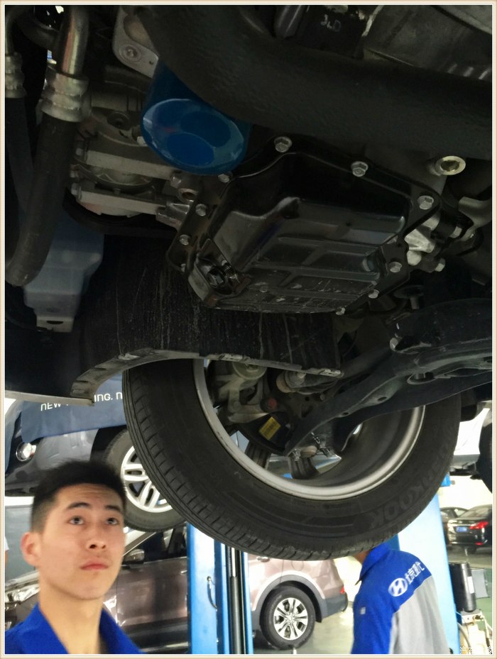 技师说我是当地第一个提车的,也是第一个做保养的。一个个在研究九妹的保养。有的说带T 的机油应该加3升有的说4升不一定够。还有的说带机油冷却的机子就是不错等等。反正当时的场景我也是醉了。跟看耍猴似得。