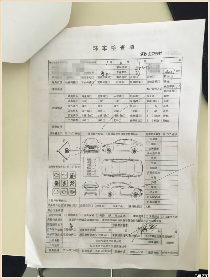 还有一件事,大家去首保一定该带的都带上。行驶证也要给他们用下。这里把表格拍给大家看看,有具体的检测检查内容和具体的收费情况。相关资料马赛克处理了,大家见谅。