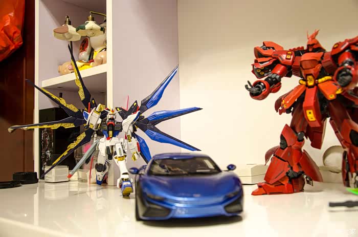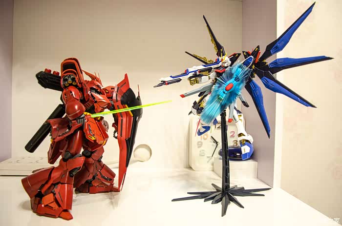 同为Mg型号,相比沙扎比,强袭自由有点小。但单摆的情况下还是很有震慑力的。毕竟强袭自由是高达,沙扎比不是。。