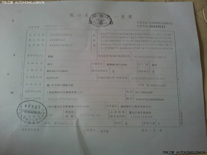 购车发票复印件,上海百事需要原件做帐,所以拿的复印件。