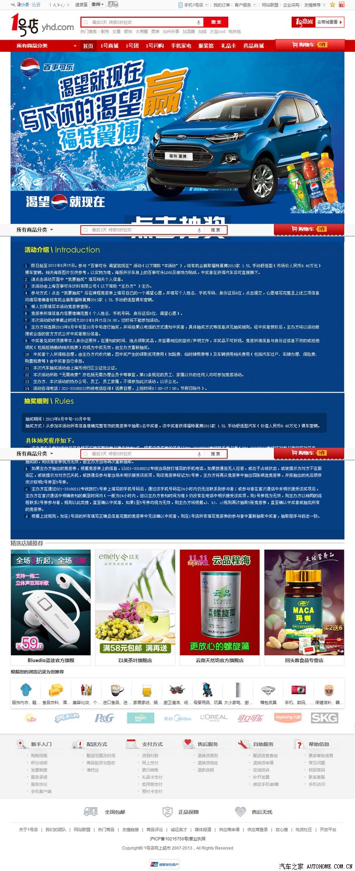 让我们先回到去年7月份吧,具体是哪天搞忘了。没事干在网上闲逛,逛到1号店去了,现在也想不起啷个进到活动页面去了。当时进去就是说有个许愿活动,有且只有一个大奖,奖品就是一台“福特翼搏 2013款 1.5L 手动舒适型”。那个时候呢也就是玩玩看,因为我一直都怀疑我的人品。。。