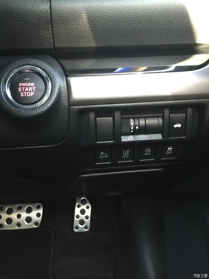 各种小按钮,车道偏移提醒、自动启停、牵引力什么的。另外,一键启动是2.5i premium和3.6的才有。
