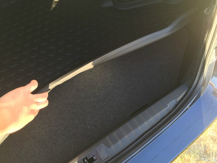 车尾箱,铺了一个垫子。揭开再揭开就可以看到全尺寸的备胎和工具,依然是邓禄普的轮胎。