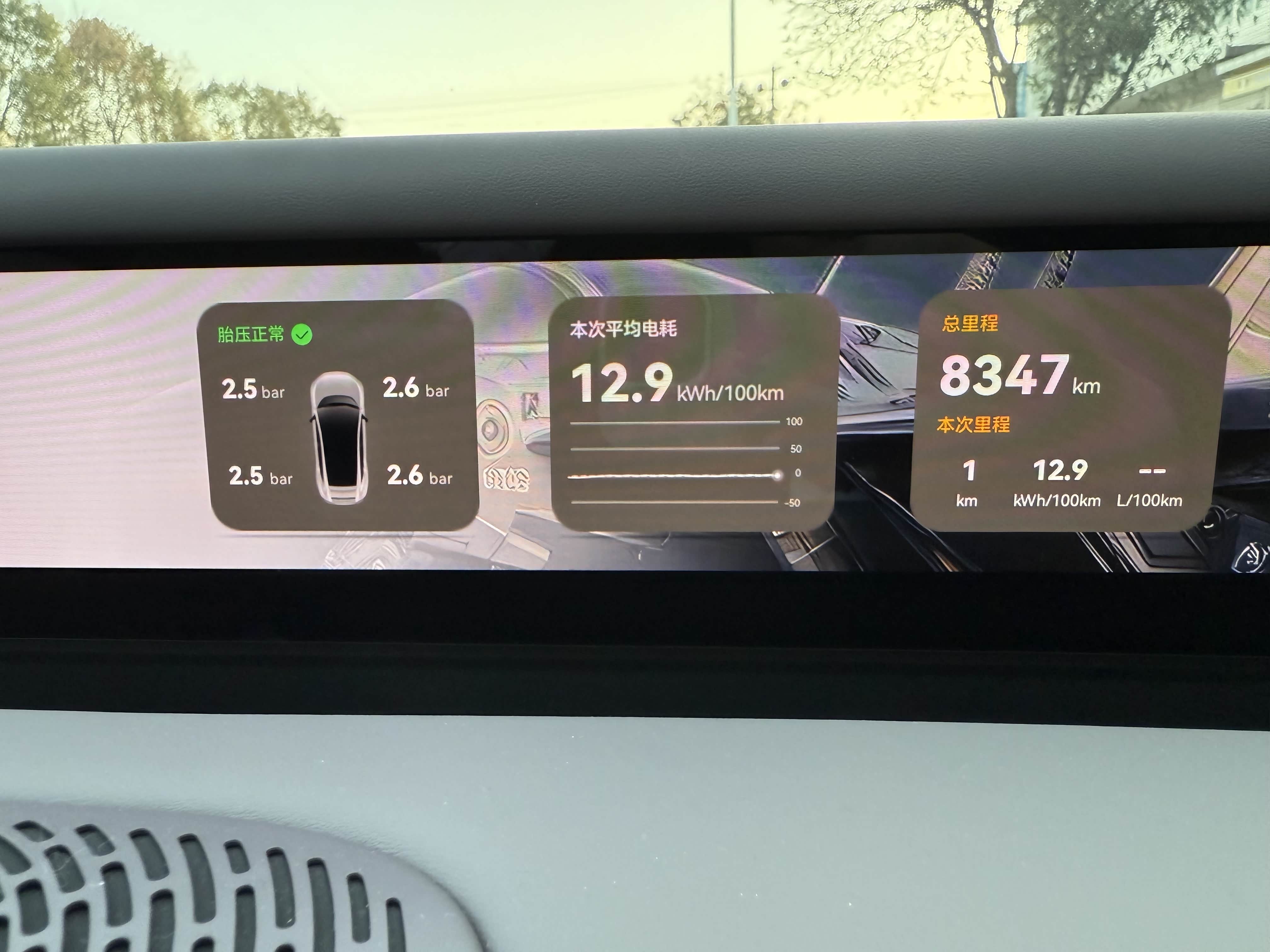 相比夏天开冷空调,开暖空调续航大打折扣,后面我在网上学习的电车冬日几个省电小技巧,最近把电耗控在14左右还算满意,首先就是和油车一样的预热,提前开启空调上车也不用冰屁股,给电池一个预启动的过程能耗也有所改善,二是胎压尽量补到2.7左右,四个轮保持一致,能降点能耗,也更安全。还有最重要的一点,就是别猛踩电门,匀速行驶,亲测车速控制在60km每小时最省电,尽量开省电模式,动能回收减速时还能反向补点电