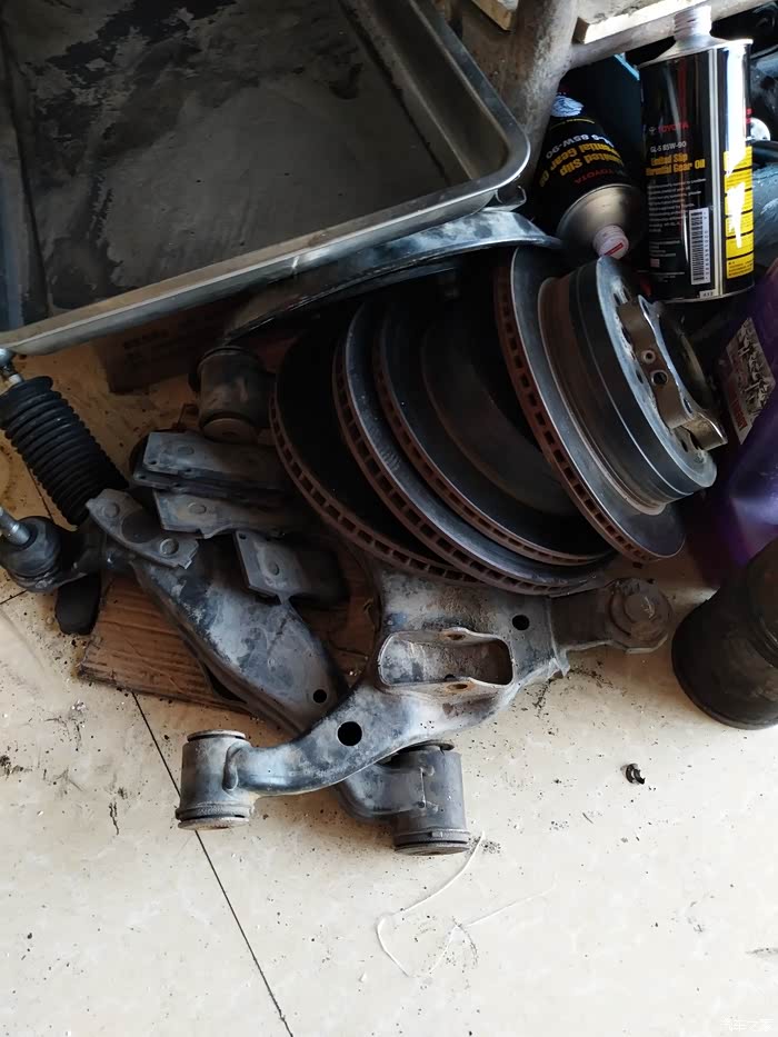 回来第二天直接仍刷车厂大整备,清理内饰,刷车。第三天我开到隔壁修配厂,老弟给我吊起来好好检查一番,要么说霸道车皮实抗造,这可不是吹的,全车底盘一个件都没换过,开车走烂路的时候一点异响都没有,而且特别软,我之前经手的都是GX低配版,这台是VX,带空气悬挂的,走大坑包时候很软,东北话叫“喧呼”底盘虽然一个件都没换过,但是毕竟这么多年了,总是心里不舒服,我就心痒痒的,就想给这台车打造成极品,因为车的基础基因本来就是精品类型的,这个年限几乎全车原漆的太少了吧,修车厂老弟告诉我其实啥都不用换,有一些易损件年头多了。有间隙有量正常,不过我还是没阻挡的了自己的这颗好奇心,最开始,换了两个平衡臂立杆,一个上支臂,换完以后,说不上什么感觉,我就想,既然想打造就彻底一些吧,然后继续举升机把车升起来,开始第二次大整备,最后决定如下:机油,变速箱油,前桥油,后桥油,分动箱油,助力油全部换成新的。(必须是专用的) 前面两个下支臂新的,四个轮子刹车盘,刹车片全部换新的,左后轮刹车分泵架,这里要说一下这个东西,其实LC120的配件相对来讲不算贵,和奔驰宝马路虎比就是天地之差,但是我万万没想到,这个一点都不起眼的小架竟然1000多。有的时候可能真就是这样,噶股的东西就是贵,哈哈。继续说:转向机,还有轴承,各种套。还有支臂配套螺丝,螺丝4根就180.也不起眼,但就是不便宜。发配件分了4次发的,刚开始我犹豫几次,后来直接下狠心了,来吧让暴风雨来的更猛烈些吧。我要让这台车重返巅峰,。经过一系列的大整备,完美出关了。, 花了钱就是不一样。爽歪歪了,咋开咋舒服,超级紧的底盘,犹如新生。处女的感觉,哈哈。我这人多少有点强迫症,只要我想做的事必须做好,要不就不做,不糊弄,不对付,糊弄对付的永远受伤的是自己,想做事先做人,死道理。 我在这里强调一下,LC120的车主们,想换一些易损件的千万别换副厂的,打个比方,纯副厂的支臂和原厂的放在一起,立马就看出来效果了,做工,质感,铁的薄厚程度都是不一样的,想收拾车就要换好东西,要么就别换了。还是那句话。换副厂垃圾配件最后糊弄的是自己。两个月前有幸得到一套雪地胎,诺基牌子的,我一直留着,就等着冬天收台霸道4000给他用上