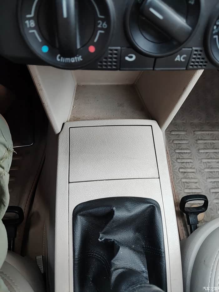 中间是大众经典MQ200变速箱换档杆,倒档(R)需要按下前推,避免误操作,体现了大众的安全设计理念。