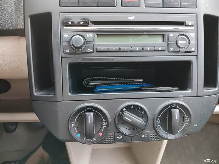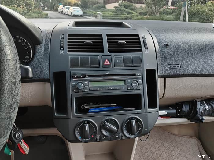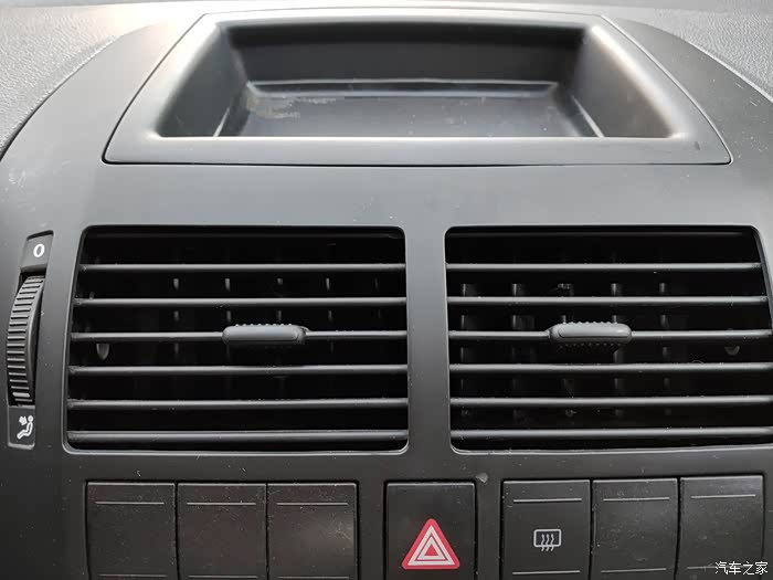 中控台上有空调出风口,收音机、暖风、空调风量控制旋钮,调节进风量大小,内循环、AC按钮。