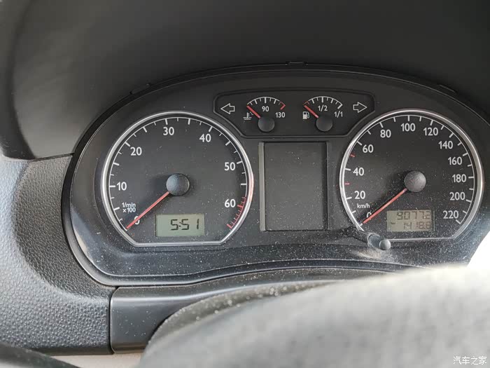 大众经典机械仪表盘,左侧是转速表,右侧是时速表,上面左侧是水温表,右侧是油量表。