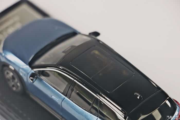 由于车门是全封闭的,我们很难观赏到内饰的细节,不过肉眼看上去还是可以接受的,起码有整体的型准以及内饰分色,中控台上超大的屏幕也还原的很棒,车模外壳为合金材质,但是拿在手里的感觉不是那么沉重,手感一般。