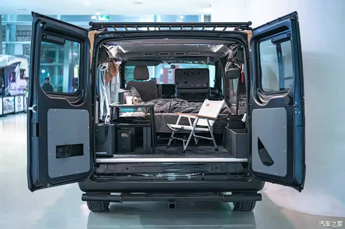 当驻车休息时,第二排座椅可以轻松放倒拼接成尺寸为1100x1900mm的床铺,满足两人舒适睡眠。座椅后方是DIY多功能区域,车主可以根据自己的喜好和需求自由布置。放上露营桌、折叠椅,就能打造一个舒适的休闲区;安装上收纳箱,可存放露营装备和生活用品。侧边还配备战术快挂系统结构,方便悬挂衣物及户外装备,让每一寸空间都得到充分利用 。