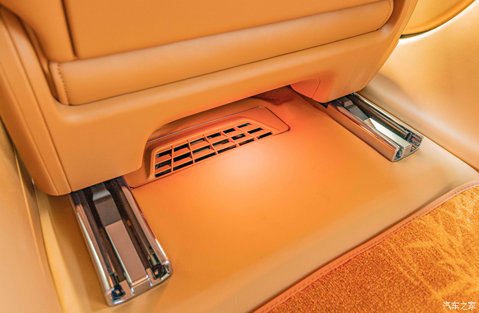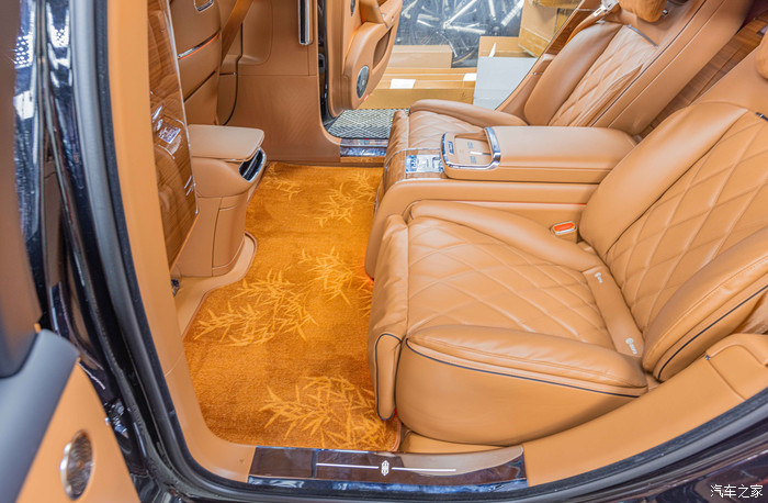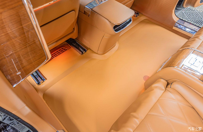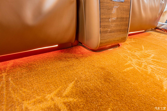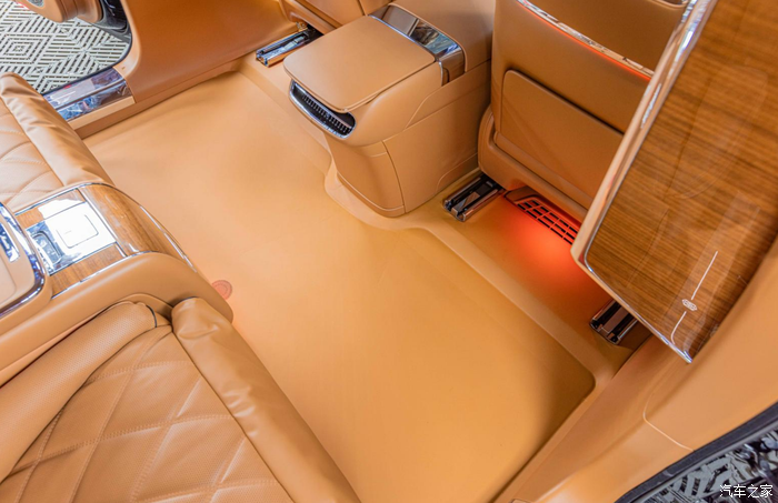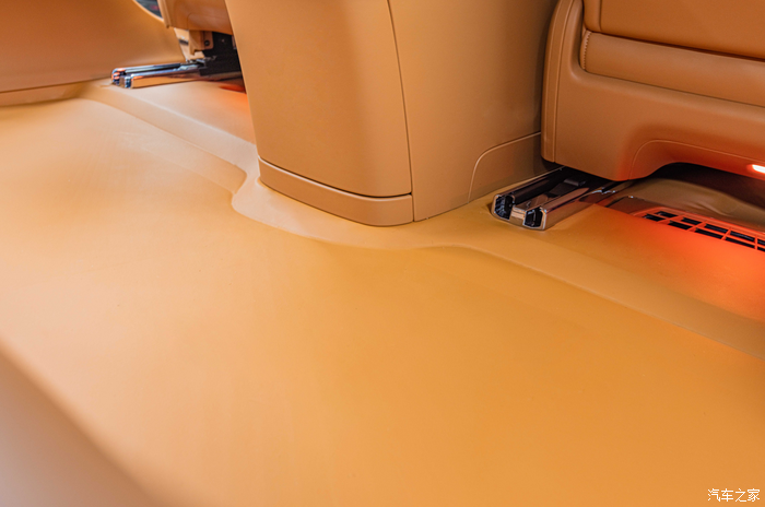 光线扫过,真皮座椅的温润与脚垫的皮革粒面釉感形成“双奢对冲”——这才是尊界车主该有的“从头到脚的奢华”。