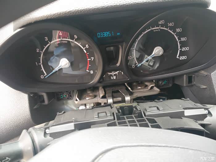 然后就卸掉仪表下面两个螺丝,还有仪表顶上一个小盖子里面藏了一个螺丝,卸掉。