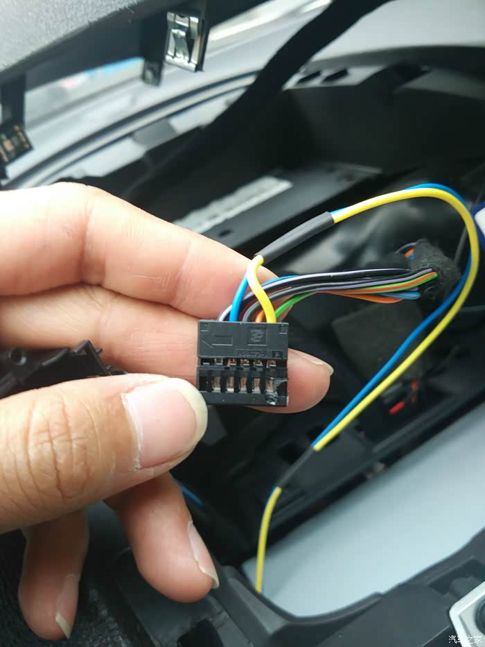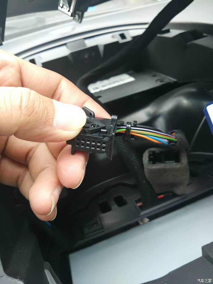把导航上插头拆下,拆开,接上多媒体控制线。