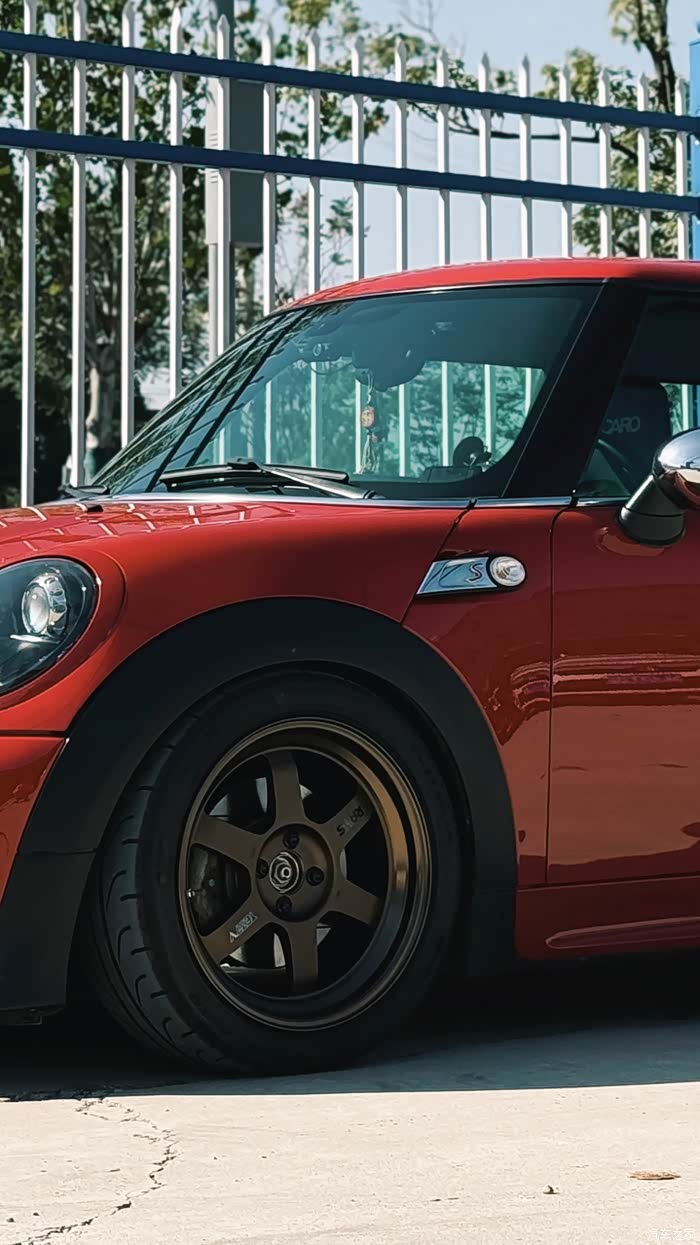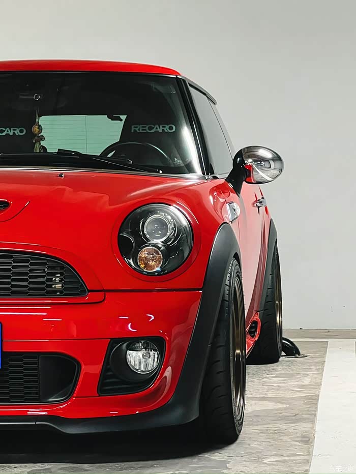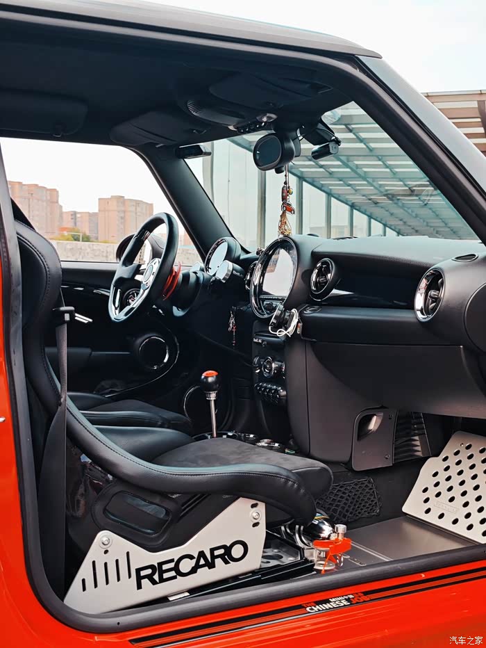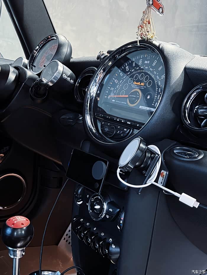 内饰主要是把红色的饰板贴黑了,暂时还舍不得拆下来拿去做油漆,加了个Brodit手机支架,也是个人认为最合适R56的支架