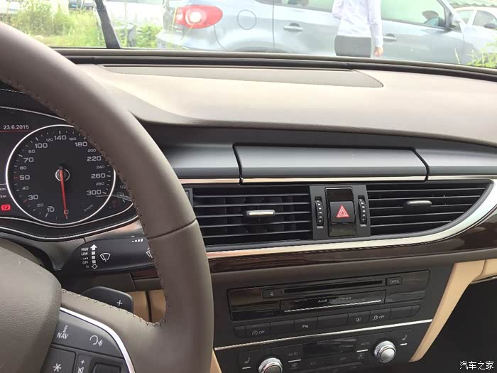 突然有一天我发现A6L竟然还有自然吸气的车?赶紧上网查了一下资料,哎哟我去,还有2.5V6的啊,在我等土炮眼中V6可是高端玩意,很多车只要是V6的都会在屁股上贴一个V6标。感觉都是牛逼轰轰的,而且听说V6的发动机声音都不一样。然后就进入各种逛各种论坛。还有看各种视频,视频主要看的是初晓敏的试驾还有闫闯的试驾。他们的试驾视频让我有了极大有兴趣,然后就是4S各种试驾,一共试驾了两次不同的4S店。一是因为我要一家一家去砍价格,毕竟对我们穷人来说40多万买个车还是希望便宜点。另外的话呢也是想在下手之前多试一会,让自己不要选错。目的很明确就只试2.5其它的发动机或者波箱不一样也没有参考意义。不同配置的车不是同一款车。后来还是2.5V6的静谧性和加速的线性,还有那种驾驶起来的亲切感。因为我本身是个大众控,特别喜欢,或者说是习惯驾驶大众的车。A6就是那种任何方面都比原来二十多万的大众车好一点的大众车。开起来特别讨好我。方向盘感觉很像,但手感更好一点,更轻一点。油门响应更灵敏一点。坐姿差不多但更矮一点更舒服一点。一切都是那么的满意。没有烧机油的担忧,CVT模拟8速当时也觉得好牛逼。没有了DSG的担忧。好吧。就是这么刚刚好,在我试驾了一次后就想订车。直到后来因为砍价才有的第二次试车。后来选车的时候,老婆死活说要棕色,订车的时候说没有棕色,问我说有一款米色的很高档问我要不要看一下。当时想着好不容易花几十万买车自己还不喜欢就不太乐意。销售说这个米色建议你看一下,这个色的车源比较少。后来一看,这个米色配的深棕色的中探台和方向盘。除了没这么耐脏之外还真比棕色的好看不少。后来没来的及请示老婆直接要了。后来再看棕色的内饰就觉得棕色土爆了。。。。。(棕色的朋友抱歉了,我眼光就这点出息),或者说一切都是最好的安排吧,A6来到了我生活和工作中。