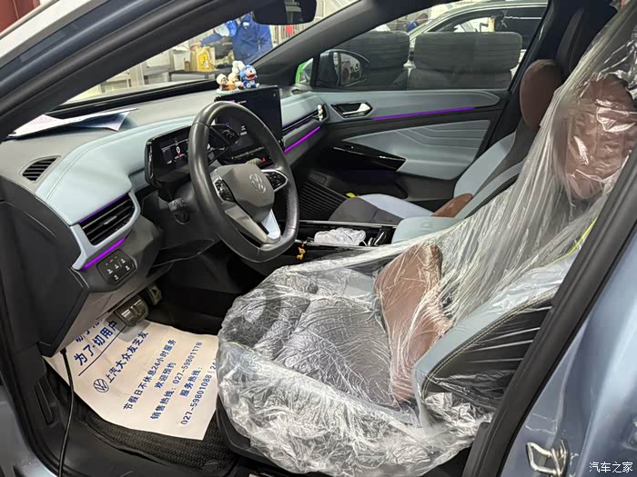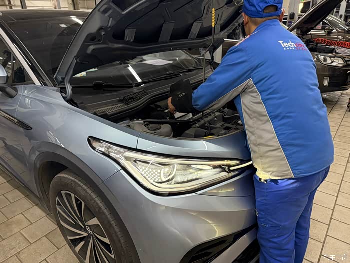 新能源汽车的保养其实非常省心的,基本流程:在4s店售后人员登记之后,给爱车方向盘和主驾驶套上对应的防尘罩。师傅在开始保养作业的时候,一般都是用电脑先读取爱车的数据,之前看到其他车友有从4s店保养时候获取电池的剩余容量,我也咨询了一下工作人员,通过一系列的换算,我的车电池容量89%,个人感觉两年半这个数值还是在合理的范围内。当然大众的标准是低于80%上报大众厂家,保修期内免费更换的。