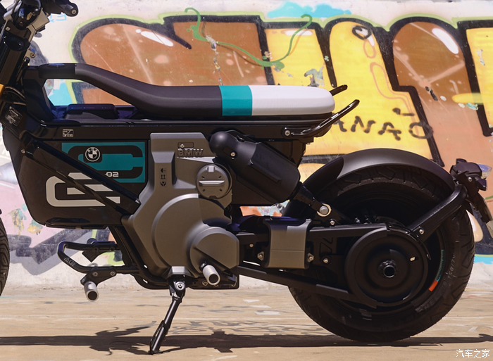 CE-02是宝马专门为城市环境打造的电动跨骑摩托,从形态上来说更接近如今的电动两轮车,和传统的摩托车风格相去甚远。视觉角度上,整车采用了盘式车轮,因此对车身的比例、车架、轮毂、前挡泥板以及车头夹具都做了黑化处理;但电机的盖板用了灰色,形成黑灰对比配色;宝马想通过这种简约的配色搭配,来强化车辆在外观上的简单。