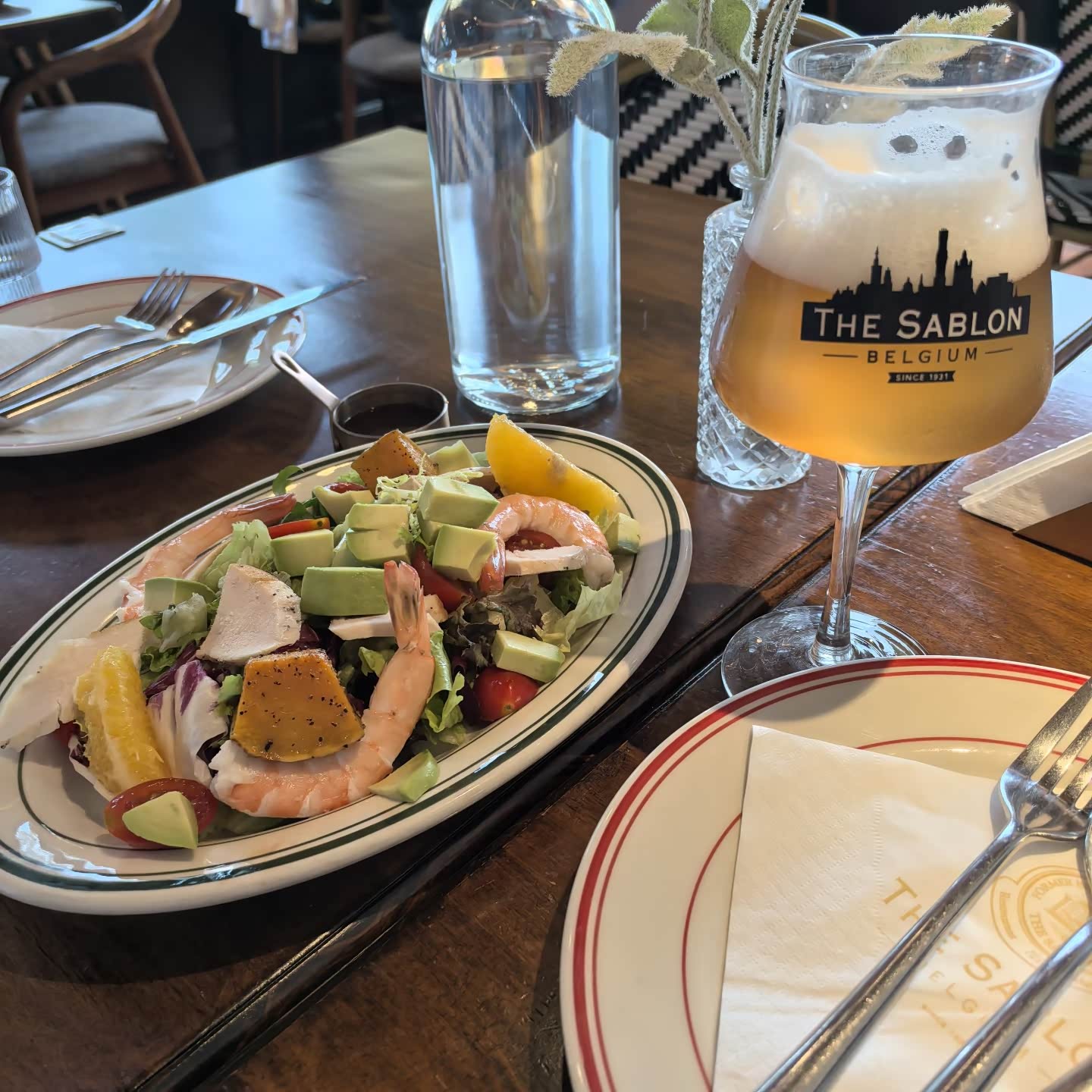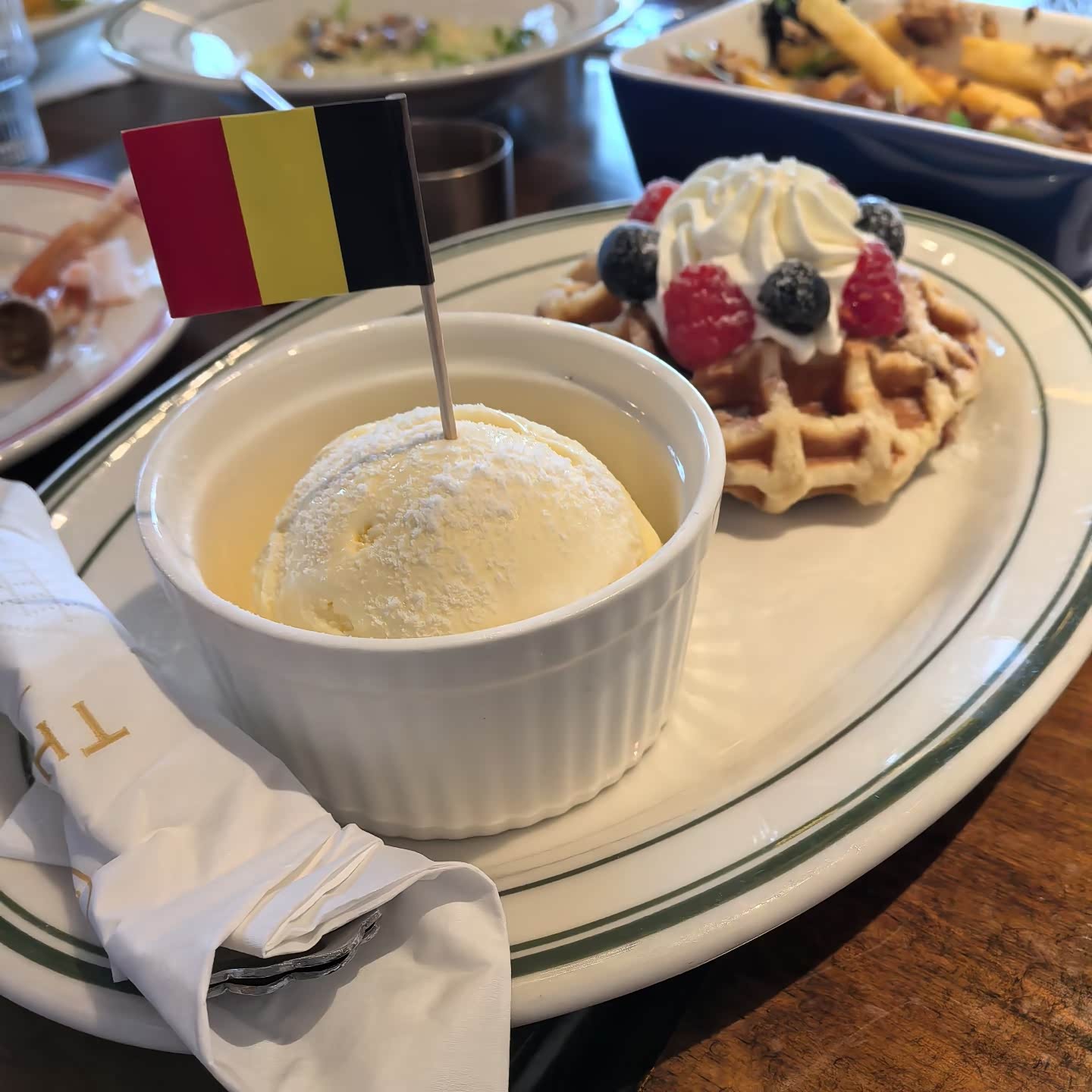 下午的行程相对轻松,我们先是去了“劈柴院锅贴”。作为青岛的老字号,这家店的锅贴一直深受本地人喜爱。我们点了三鲜馅和虾虎馅的锅贴,刚出锅的锅贴外皮金黄酥脆,咬一口汁水四溢,馅料新鲜十足,尤其是虾虎馅的,能吃到大块的虾肉,鲜得让人忍不住想多吃几个。吃完锅贴,我们又去了“THE SABLON”,这家比利时餐厅藏在一条安静的老巷里,环境优雅而温馨。我们点了一份华夫饼,搭配着店里特调的啤酒酱,华夫饼外脆里软,带着浓郁的奶香味,啤酒酱则增添了一丝独特的风味,吃起来别有一番滋味。