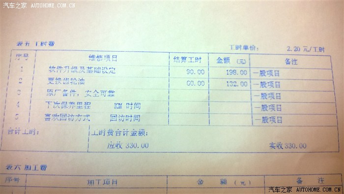 换好了齿轮油后去另一边升级,因为离得比较远就没拍照。下面来张详细的工单照片。